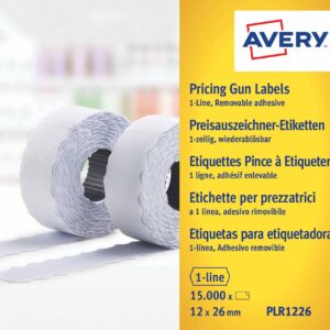 PLR1226 – Etichette 2 linee bianche rimovibili 12×26 – 1.500 etichette per rotolo – 10 rot. – per prezzatrici Avery