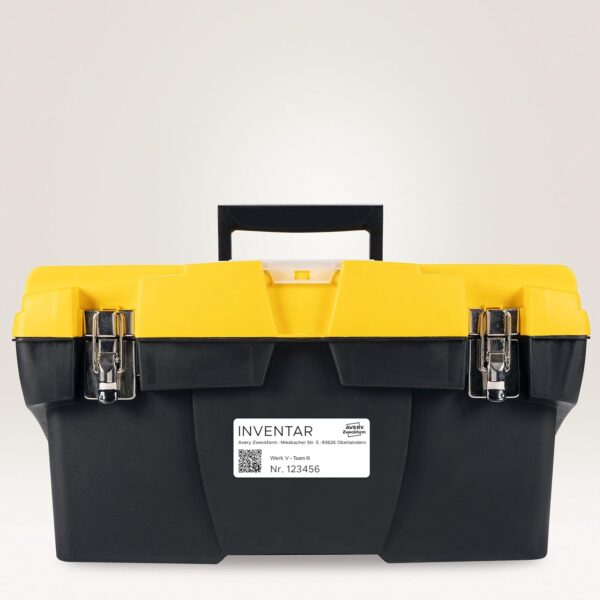 Materiale: plastica ultraresistente –Impermeabile, resistente allo sporco, all’olio e alle temperature (da -20 °C a +60 °) Adesivo: permanente Quantità etichette per rotolo: 400 Rotoli per confezione: 1