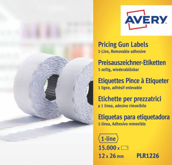 PLR1226 - Etichette 2 linee bianche rimovibili 12x26 - 1.500 etichette per rotolo - 10 rot. - per prezzatrici Avery